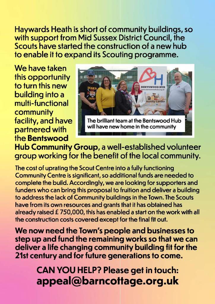 Our group, the 5th Haywards Heath Scout, have come together with Mid Sussex District Scouts and The Bentswood Hub community centre to imagine an inspiring, practical and regenerative future for our community, a vision connecting nature, social wellbeing and local prosperity with significant impact for generations to come.